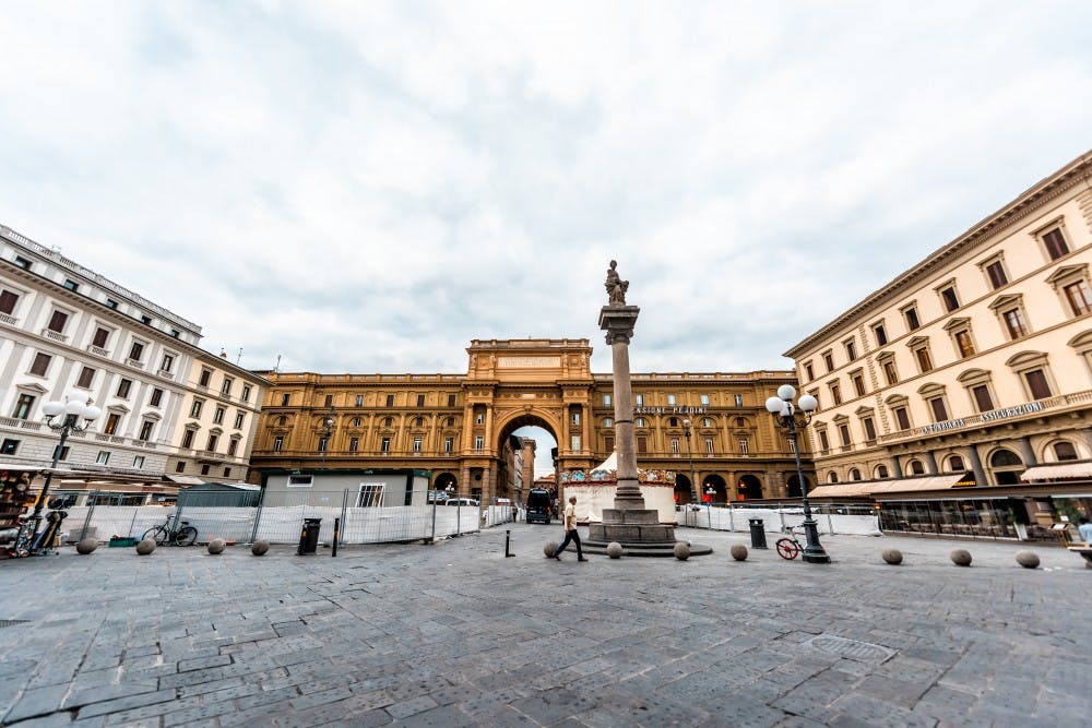 Florence gets its name from Florentia, founded by the Ancient Romans. Piazza della Repubblica is now where the ancient Florentia's Forum was.